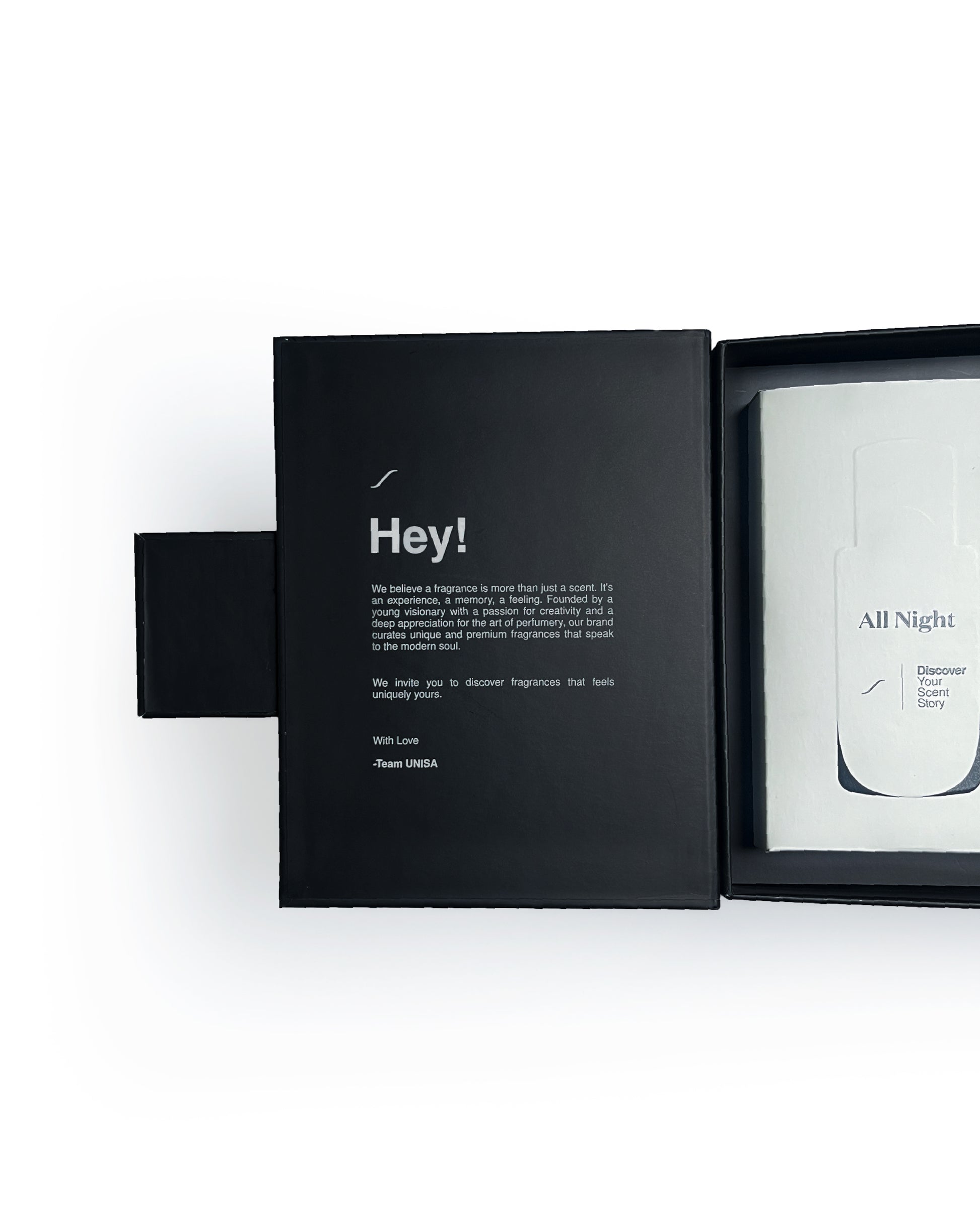 Unwrap the essence of UNISA with our Signature Gift Set. A curated journey through one of our 50ml signature fragrances and a discovery set of all four scents that redefine modern perfumery. Designed in our iconic black story-box, this set isn’t just a gift, it’s an experience.